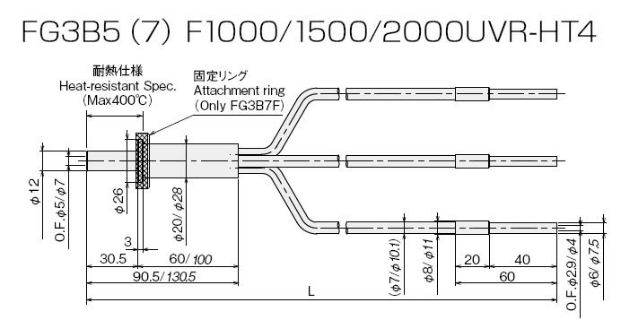 对应本公司光源机的标准型 : U, 特殊加工形状型 : L