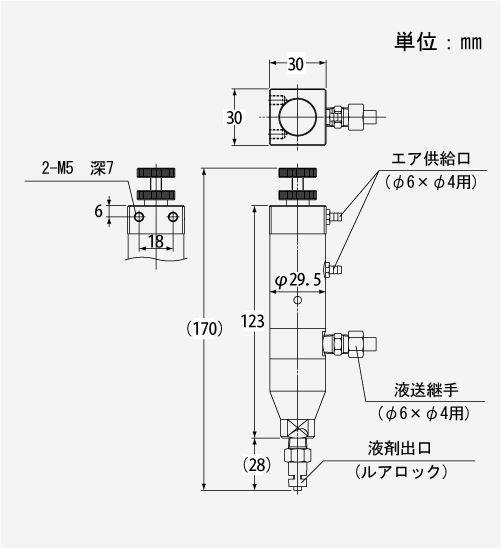 接 続 口 直径 | 液体入口 | φ6 X φ4送液接缝 |
